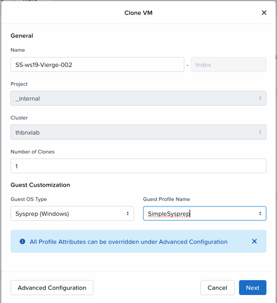 Nutanix – Prism Central – PC 7.5 : Cloner des VMs avec Guest Customization